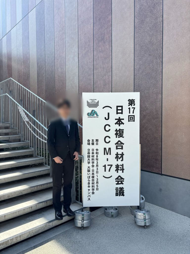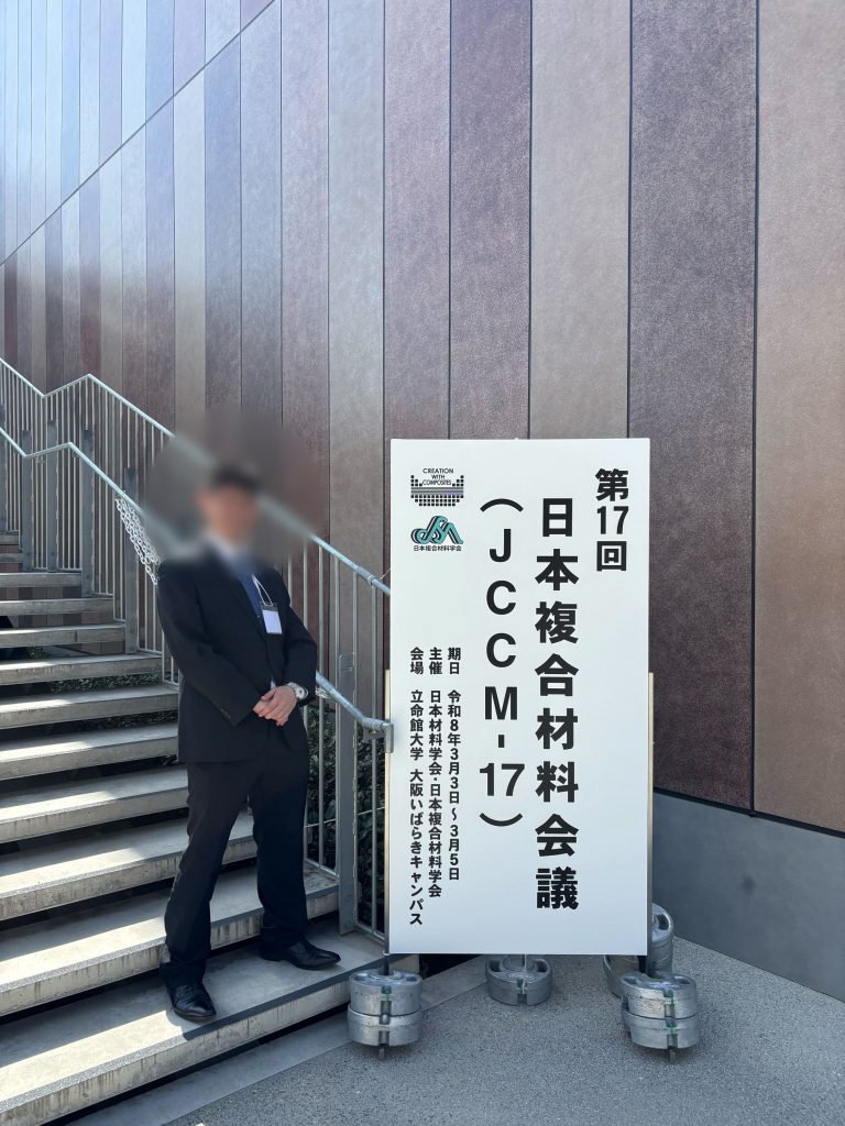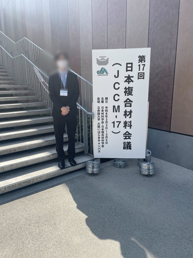 2026年3月3日~5日に大阪で開催された第17回 日本複合材料会議(JCCM-17)にて本研究室の学生3名と研究員が発表しました。